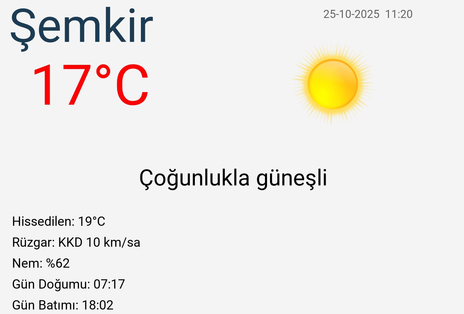 Şemkir Hava Durumu